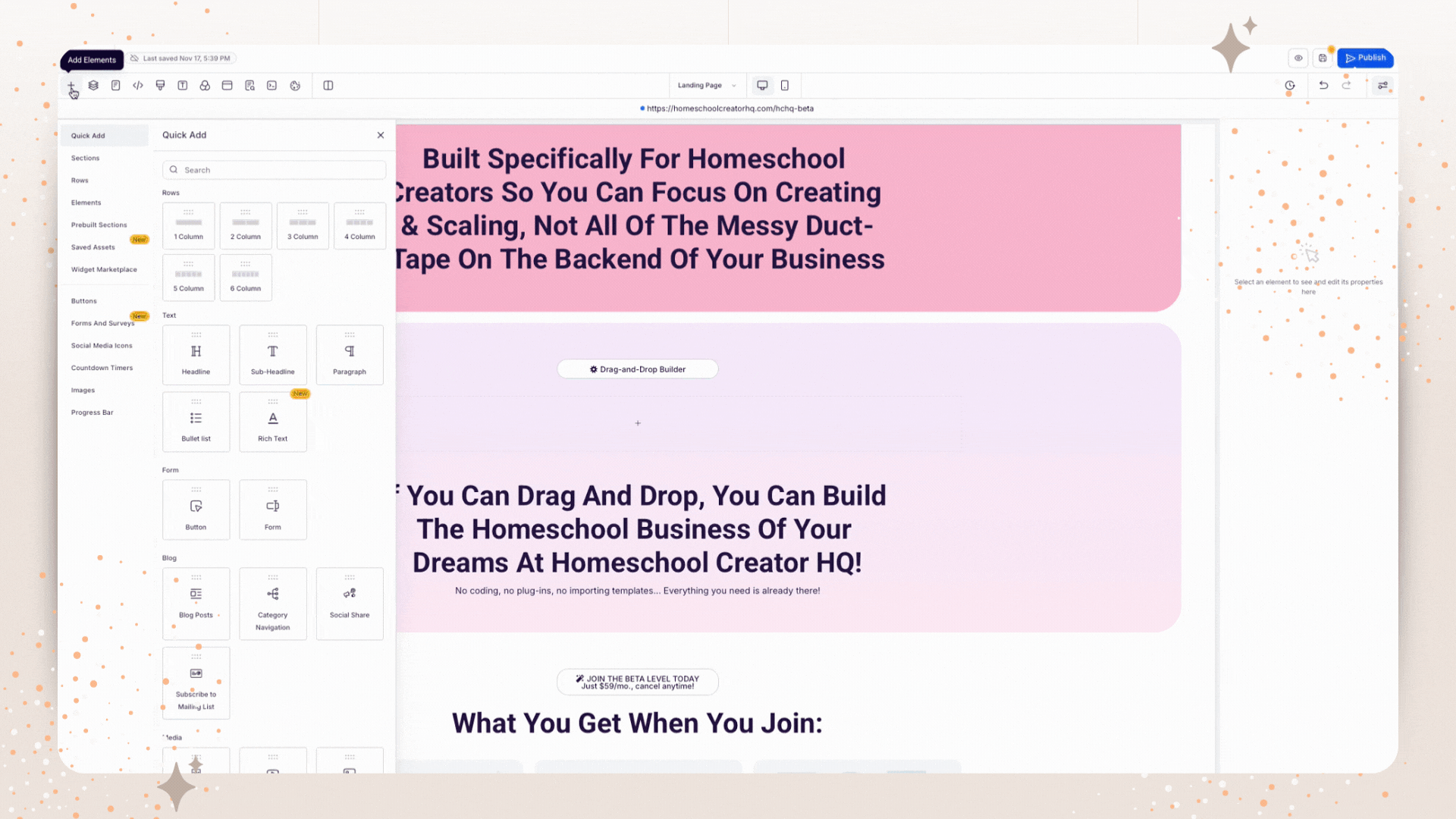 Homeschool Creator HQ is built by a seasoned homeschool creator who knows the ins and outs of building and growing a successful homeschool business. You'll have access to exclusive templates, funnels, pages, portals, and systems made specifically for homeschool creators - not generic coaches or marketers.